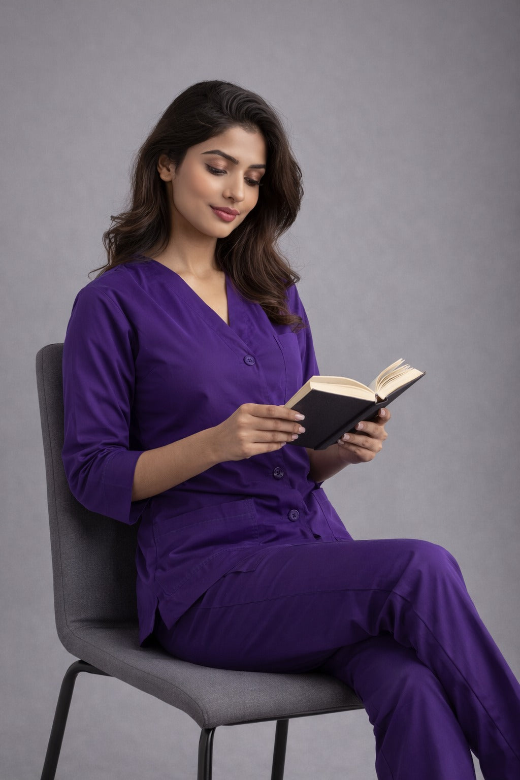 Elite Purple Medical Scrub Set for Women – SPUN Fabric | Comfortable | V-Neck Top & Touser | Soft Breathable Fabric, Professional Workwear (Copy)