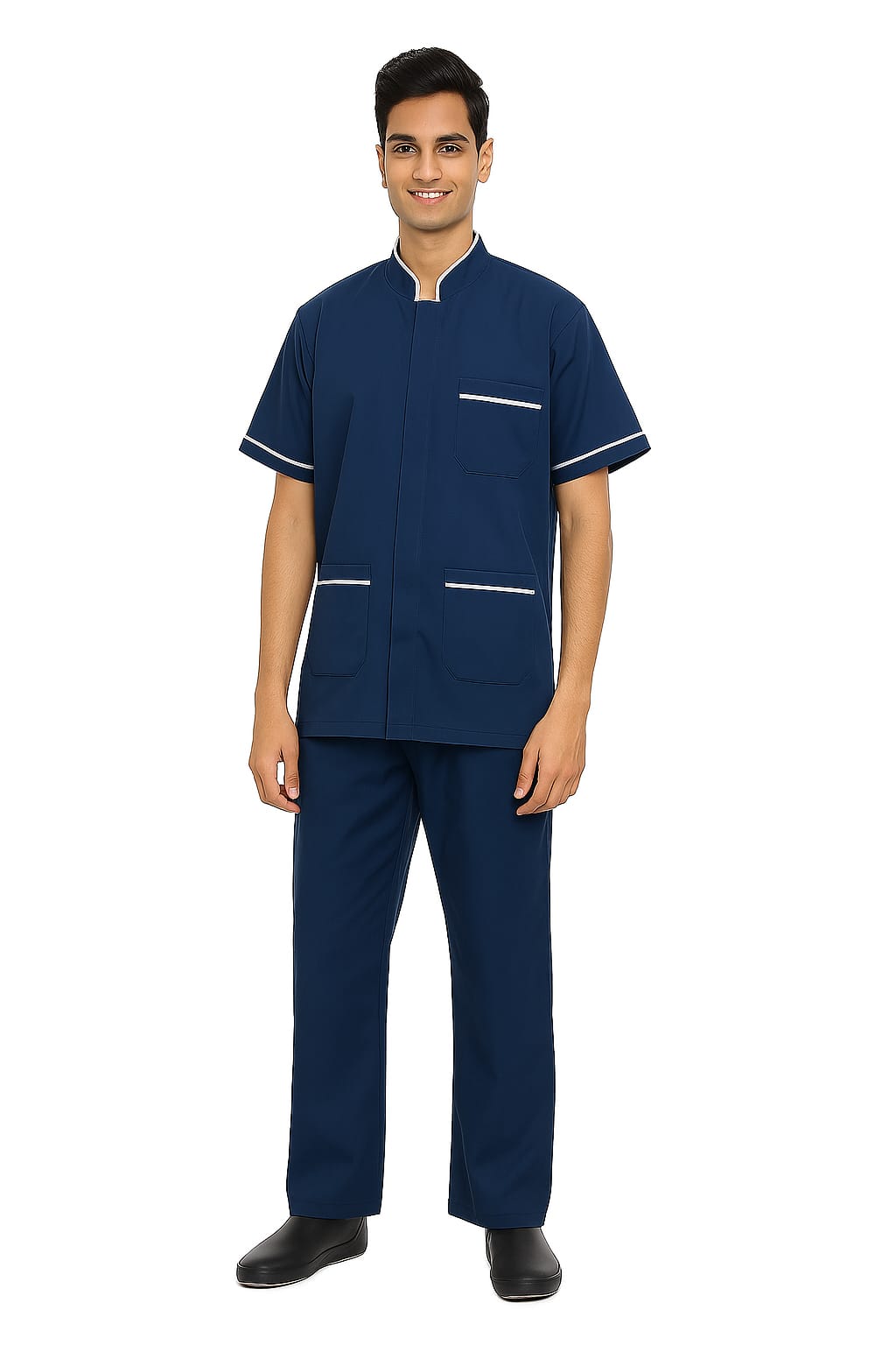 🔹Top Design: Short sleeves with contrast white piping on collar, sleeves, and pockets
